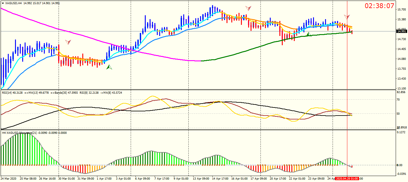 I closed that position @ 15 . -100 pips .macd & rsi wrote: Fri Apr 24, 2020 4:48 pm #XAG/USD :