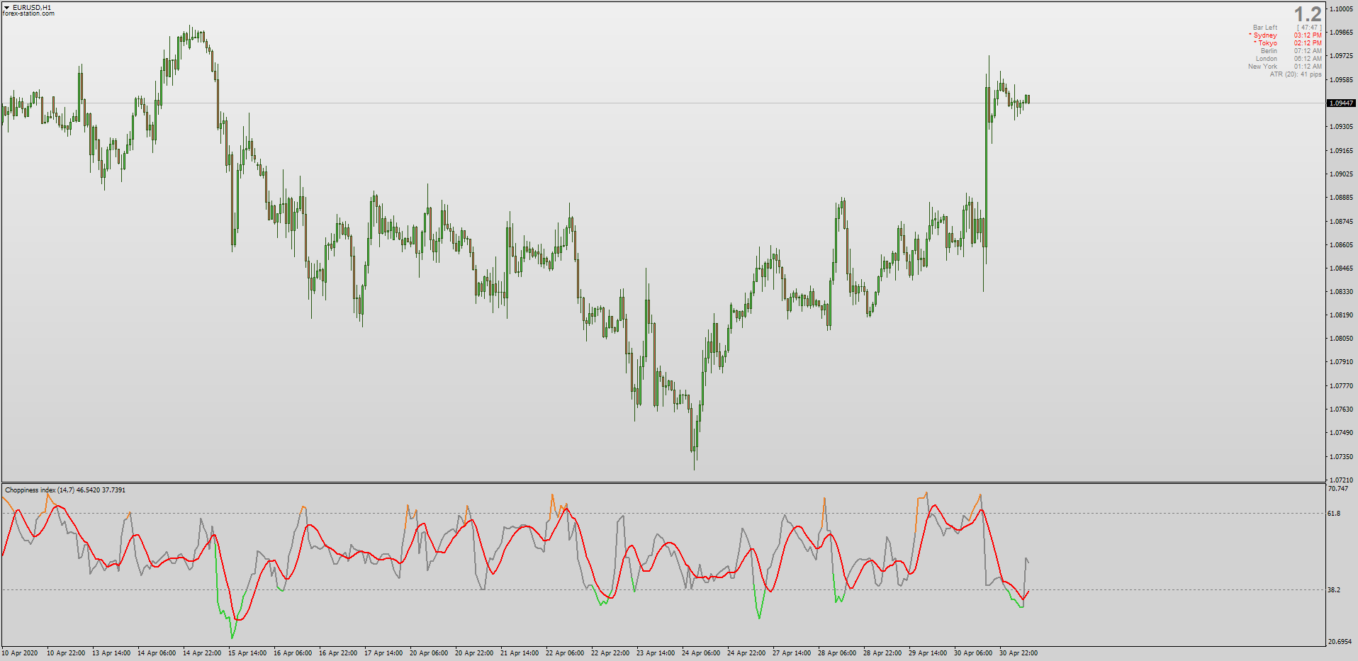 Commodity trader Bill Dreiss's "Choppiness Index" is a volatility indicator that displays when the market is trending or ranging. This tool was coded by Mladen for MT4 & recently upgraded by Mrtools to include a non-repainting MA for crosses. Download: viewtopic.php?p=1295409190#p1295409190