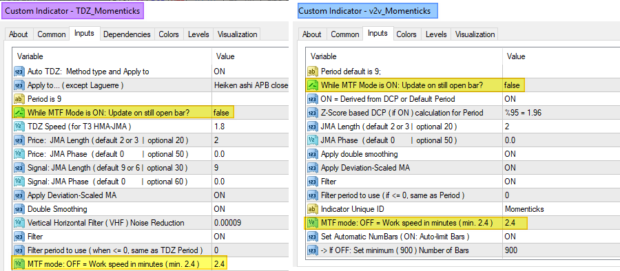 ─ While MTF Mode is ON, the default process update is on New Bar only otherwise, update on still Open Bar.