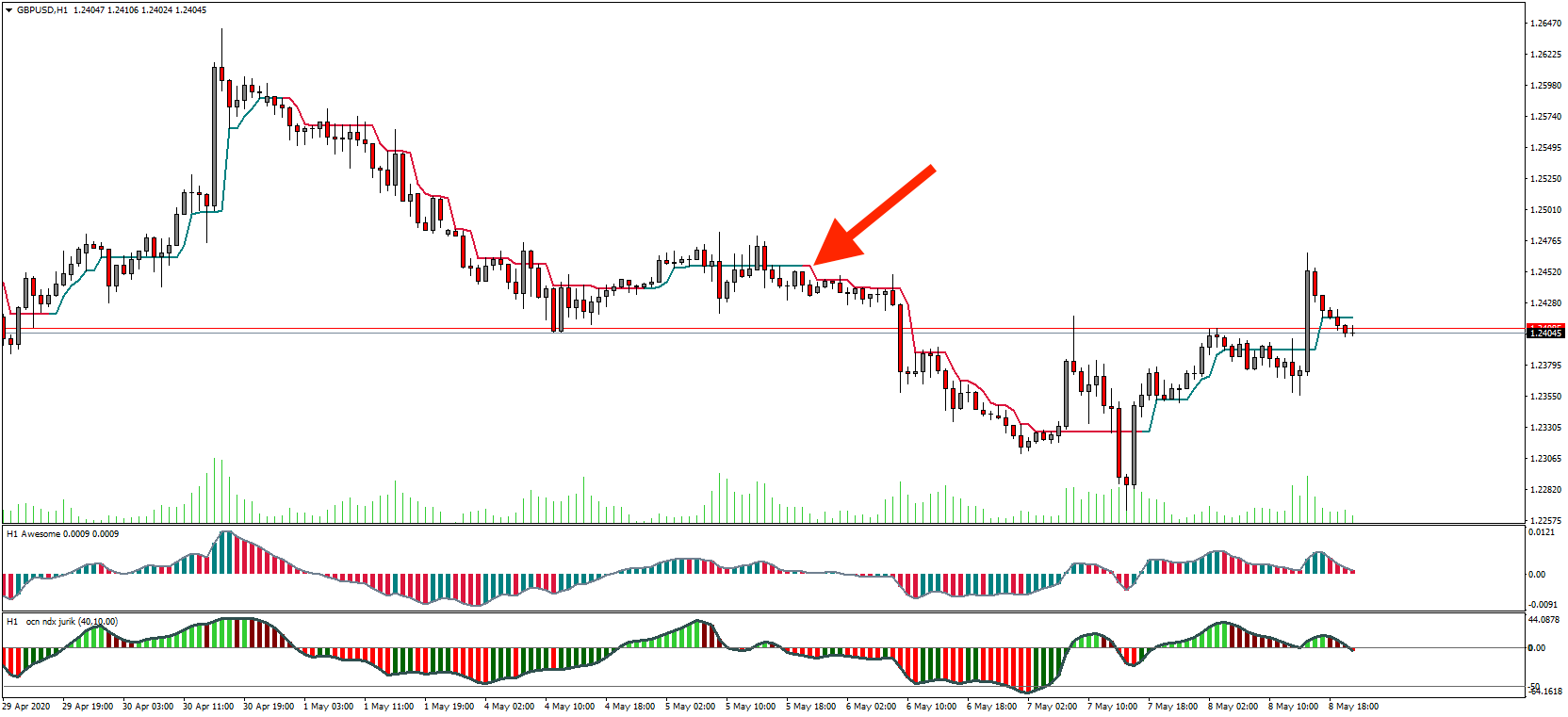 Hi Josi, Sorry but that is not the line I meant. I am referring to the moving average line that changes red and green?