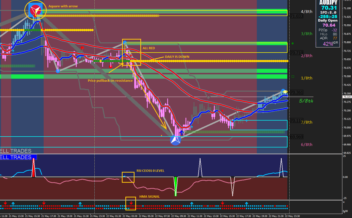 Trade from square to square, take trades when price pullback on support and resssistances and when HMA give signal, (color of candles, background,Etc.) you dont need spyke indicator it is just an extra. Rsi 0 level cross is a good point.
