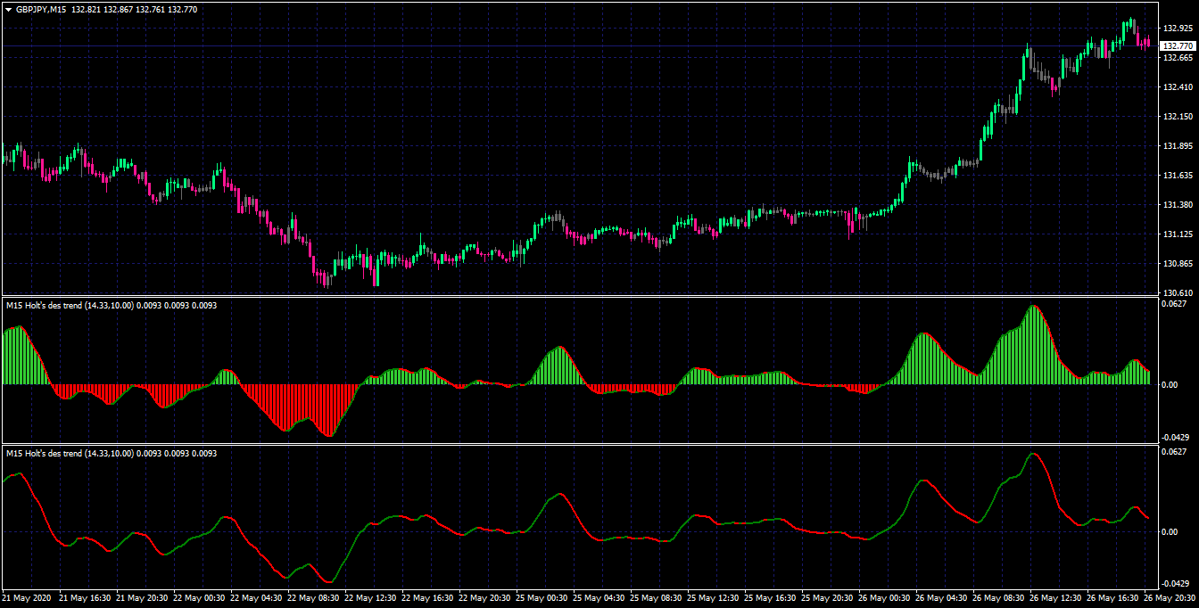 Made this version which you can choose to use the histo or not.maxus182 wrote: Tue May 26, 2020 5:51 pm Hi, does anybody have Holt Double Exponential Smoothing Trend indicator, but line only (in separate window). This one is a histogram, and I can't put MA on it.
