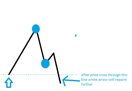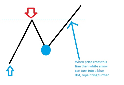 But this one here can also happen to you (how reality can look): I call this "fake arrow" since obivously when price cross over the blue dotted line, the red white arrow manifest itself into a blue dot