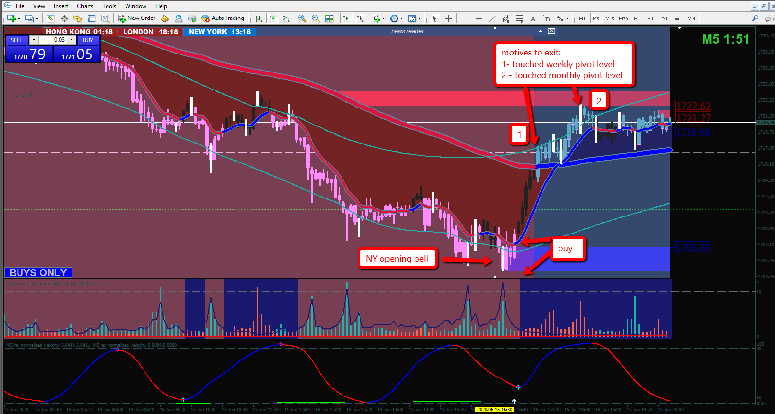 Gold this morning (since NY opening bell) - 5 minutes TF.