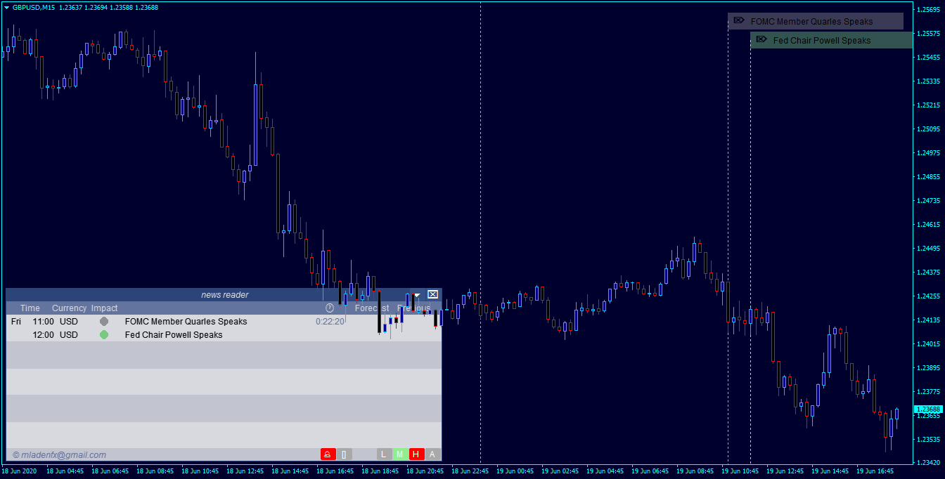 By default the only news that is showing is high impact news which don't think there is any today, on the box on your chart in the bottom right hand corner those are buttons for high,low, and medium impact news, if you click on those it should show a couple of news events already over with.RZAMK wrote: Fri Jun 19, 2020 10:46 am