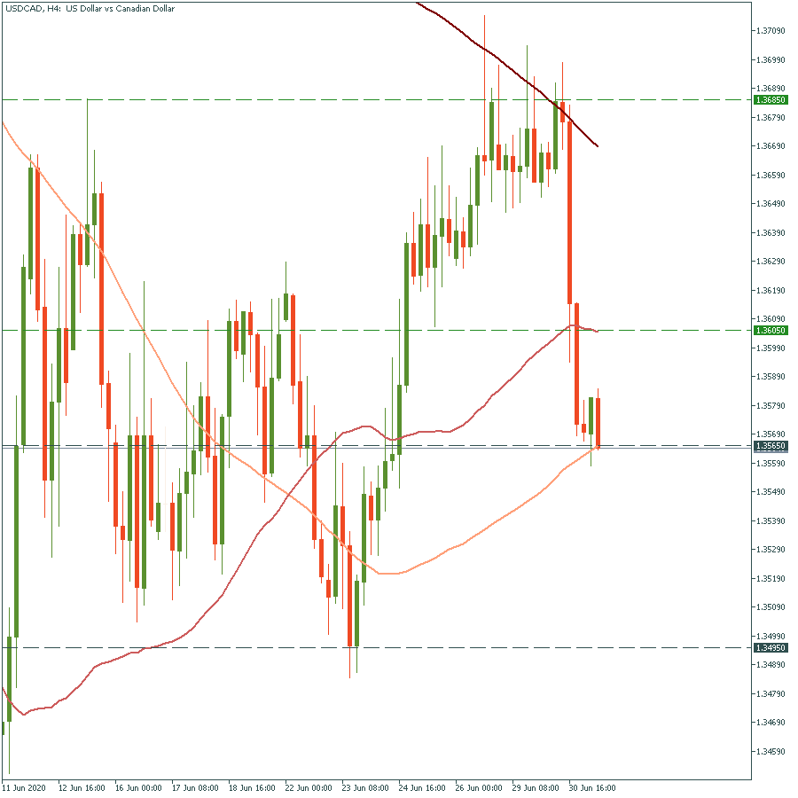 The encouraging Canadian GDP pushed USD/CAD down. The pair met the support at the 100-day moving average at 1.3565. The risk-on market sentiment may push it even lower. If it breaks it down, it will clear the way towards the next support at 1.3495. Resistant levels are at 1.3605 and 1.3685.