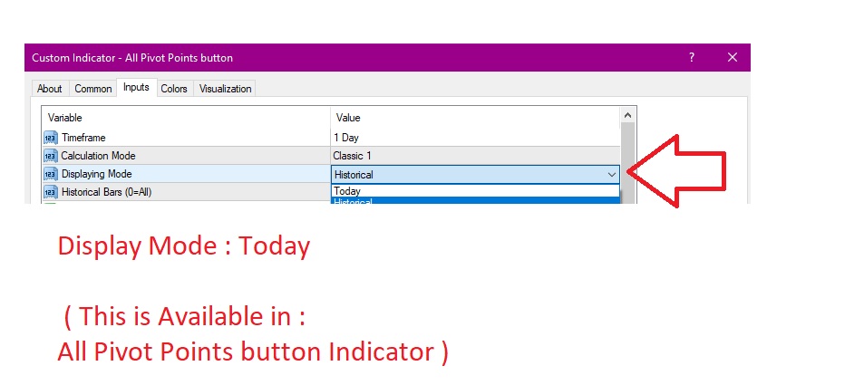 3) Displaying Mode : Today Option *** ( available in your posted Indi : All Pivot Points button )