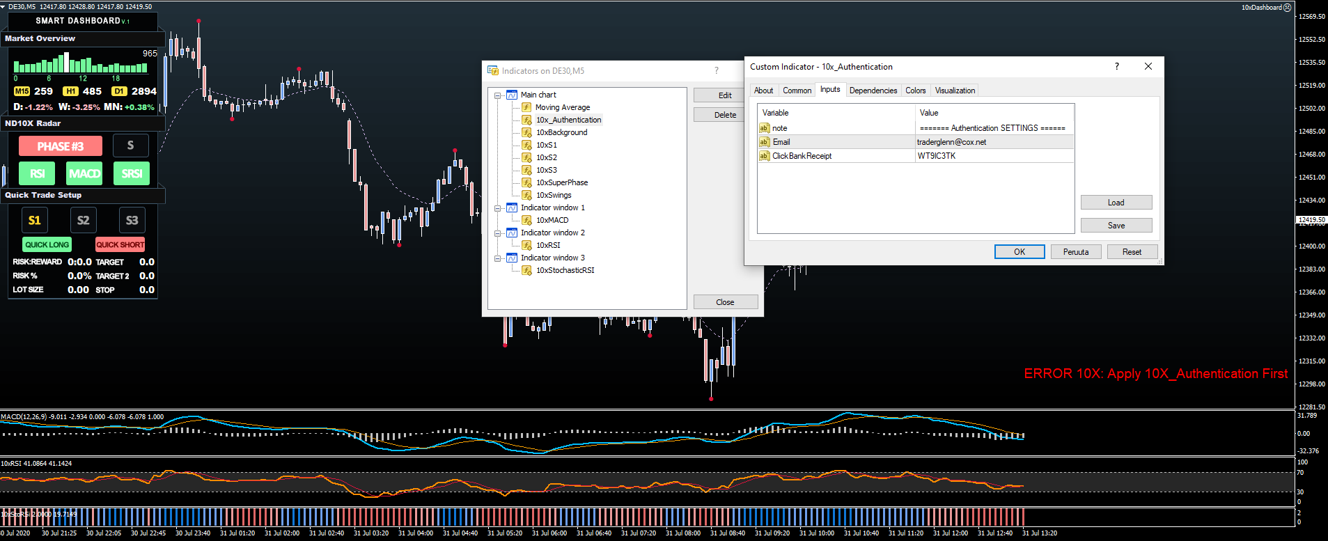 No, that can't be a broker issue. If you have all indicators in the specifc folders, have installed the font file "Arrows" (i.e. the content of the .rar file), have refreshed the Navigator window (where the Indicators are) and then uplodaded a template, there is no logic that "Apply 10X_Authentication first" is popping up. It seems obvious that the file is missing.
