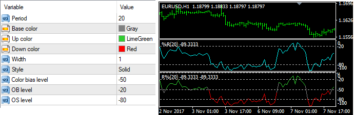 Fun fact - R% is equal to the fast stochastic minus 100, or regular stochastic with slowing of 1, minus 100.