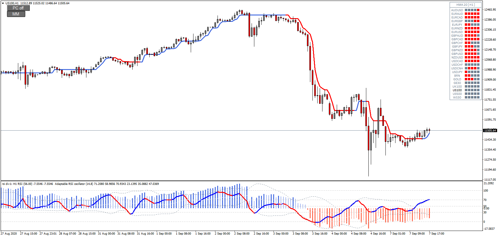 a) signal line reflects current TF (for example H1)