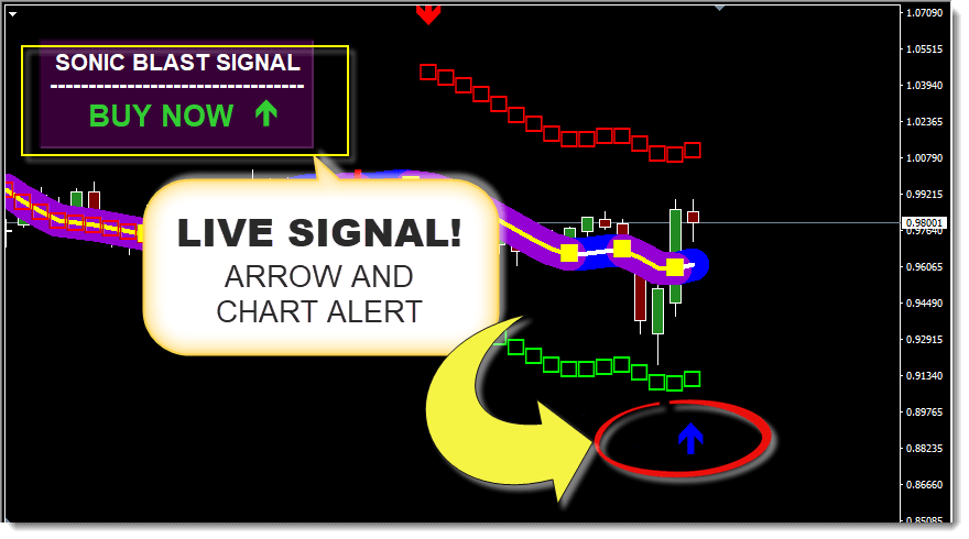 The Sonic Blast Forex System is ready to use right out of the package! It comes with a template that when you load, all settings colors show instantly. You don't have to worry about anything after. This is a very unique trading system and something that you probably have never seen. It is based on price action channels and is SUPER ACCURATE! Each channel band has it's own individual square so that you can see each trend change to the very precise level! That said, it gets EVEN easier. It comes with a built it range/trend change detector that alerts you with a Buy or Sell arrow.