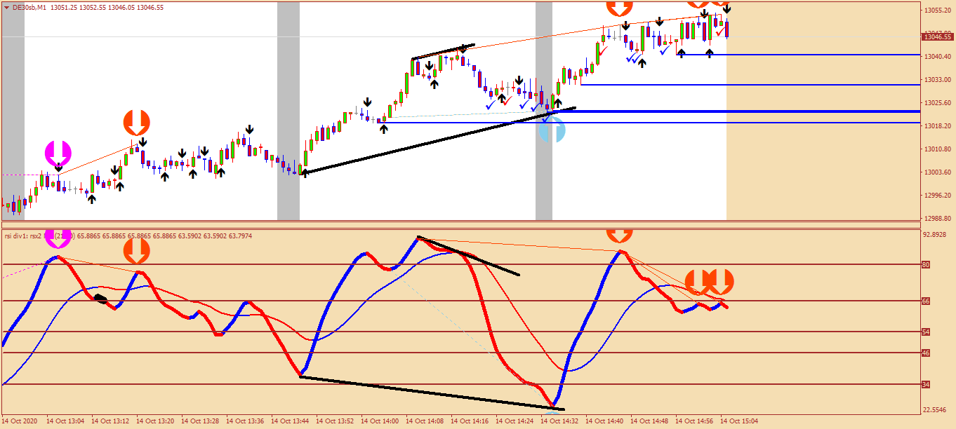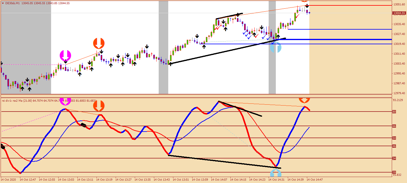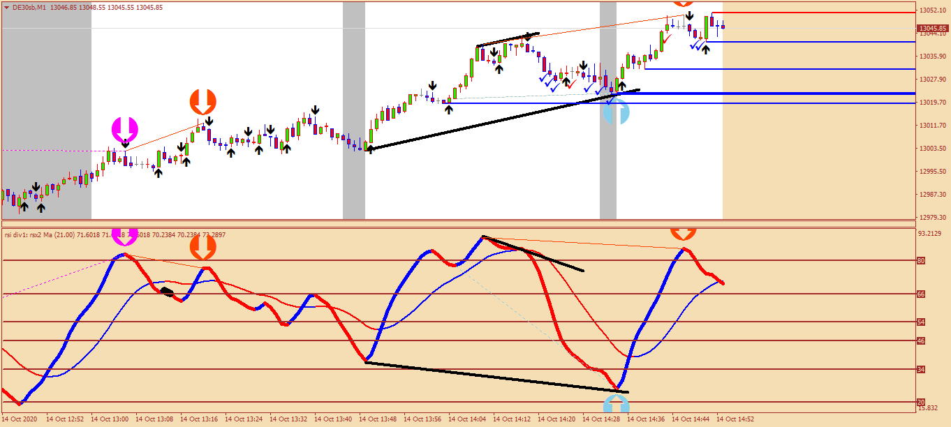 Consecutive screengrabs show the sequence of waiting and importantly the EXIT - when the RSx has reached the 20 level in this case. +10 points for that very safe trade.