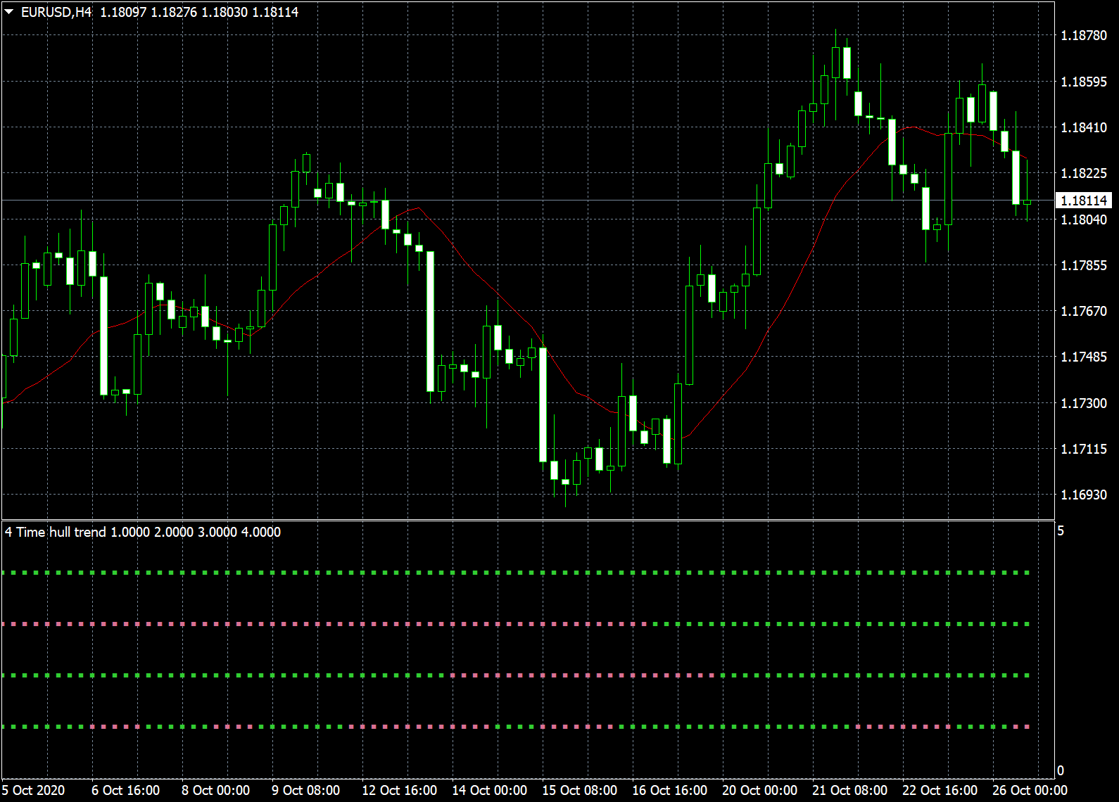 I have found a HMA for MT4 that has a dashboard and the option to show mutliple timeframes.