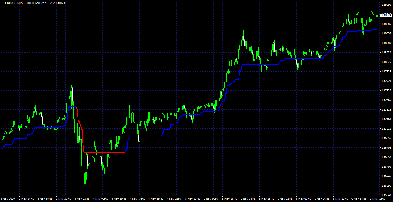 This is super trend with averages coded a little differently, also has a choice of using atr,mt4 standard deviation, custom deviation, ema deviation ,or custom deviation with standard error. Alerts are on color change.