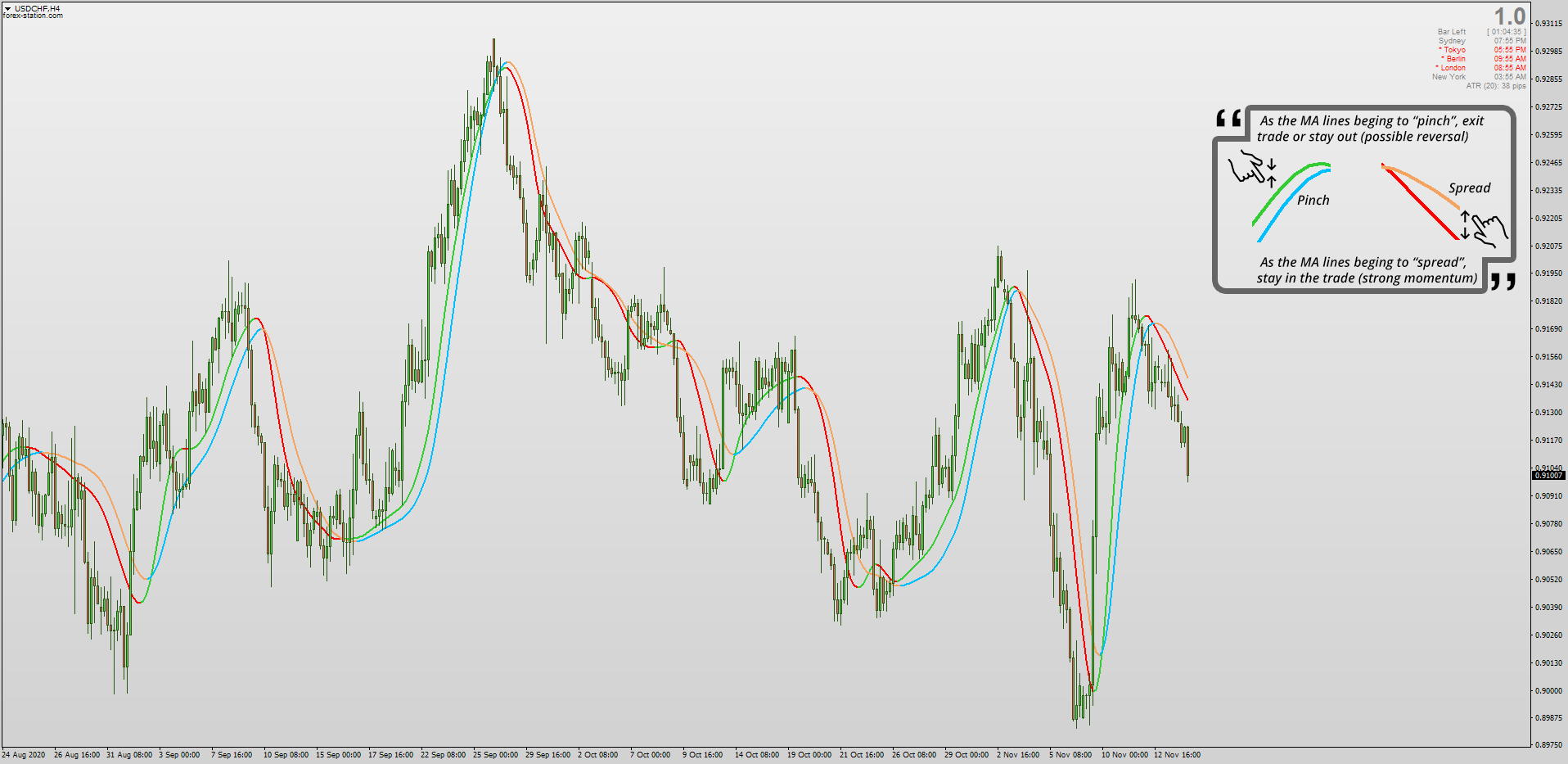 - When the lines begin to "spread" this shows strong momentum and you can stay in the trade for more profit