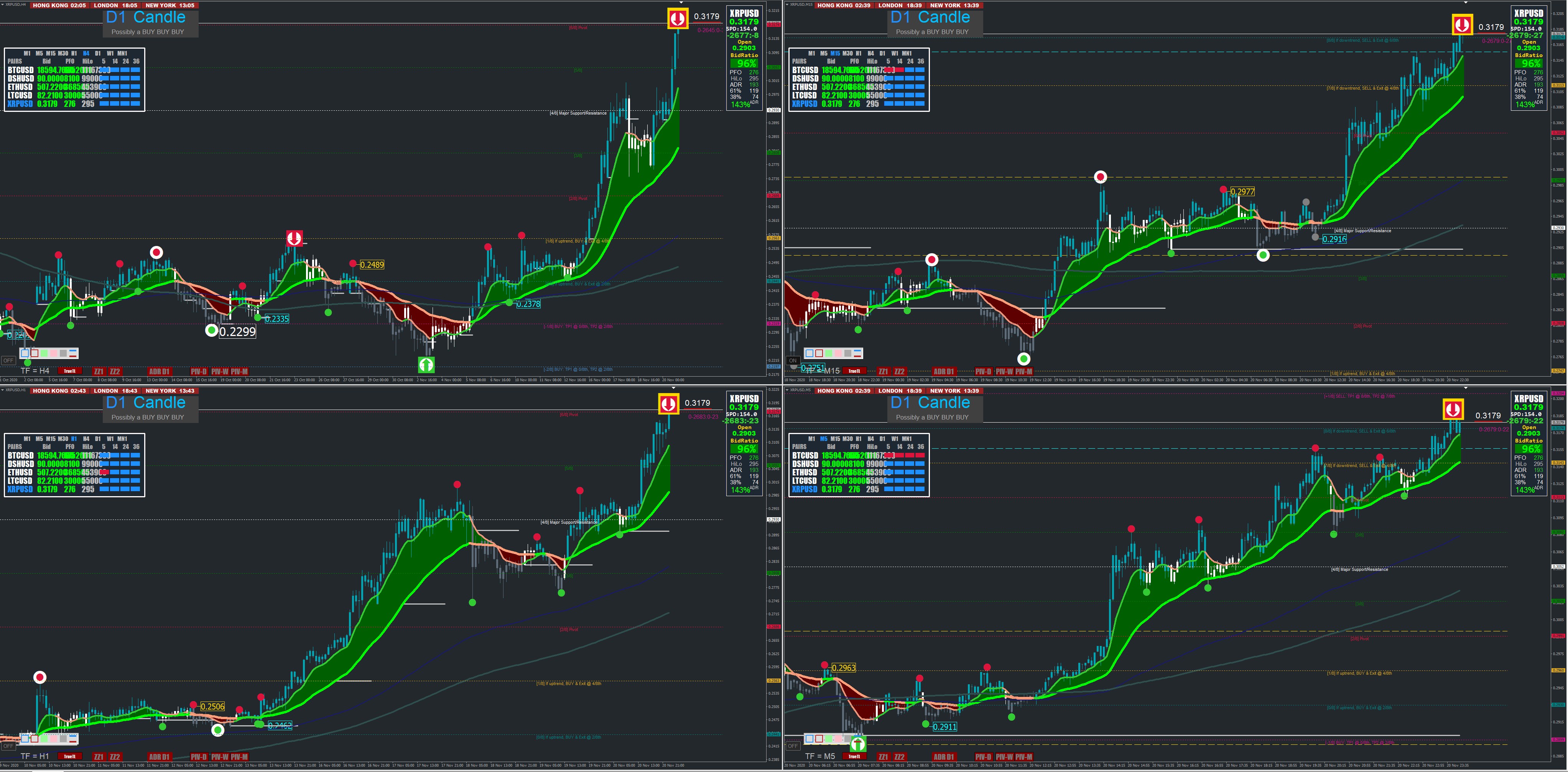 The most successful version of "XARD" for me in terms of trend following system while waiting for the final version! (Beta XMAS Edition 2020). See on the Crypto Ripple : XRPUSD at H4-H1-M15-M5. *** + 42% since the turning point in H4 on 2/11 ***