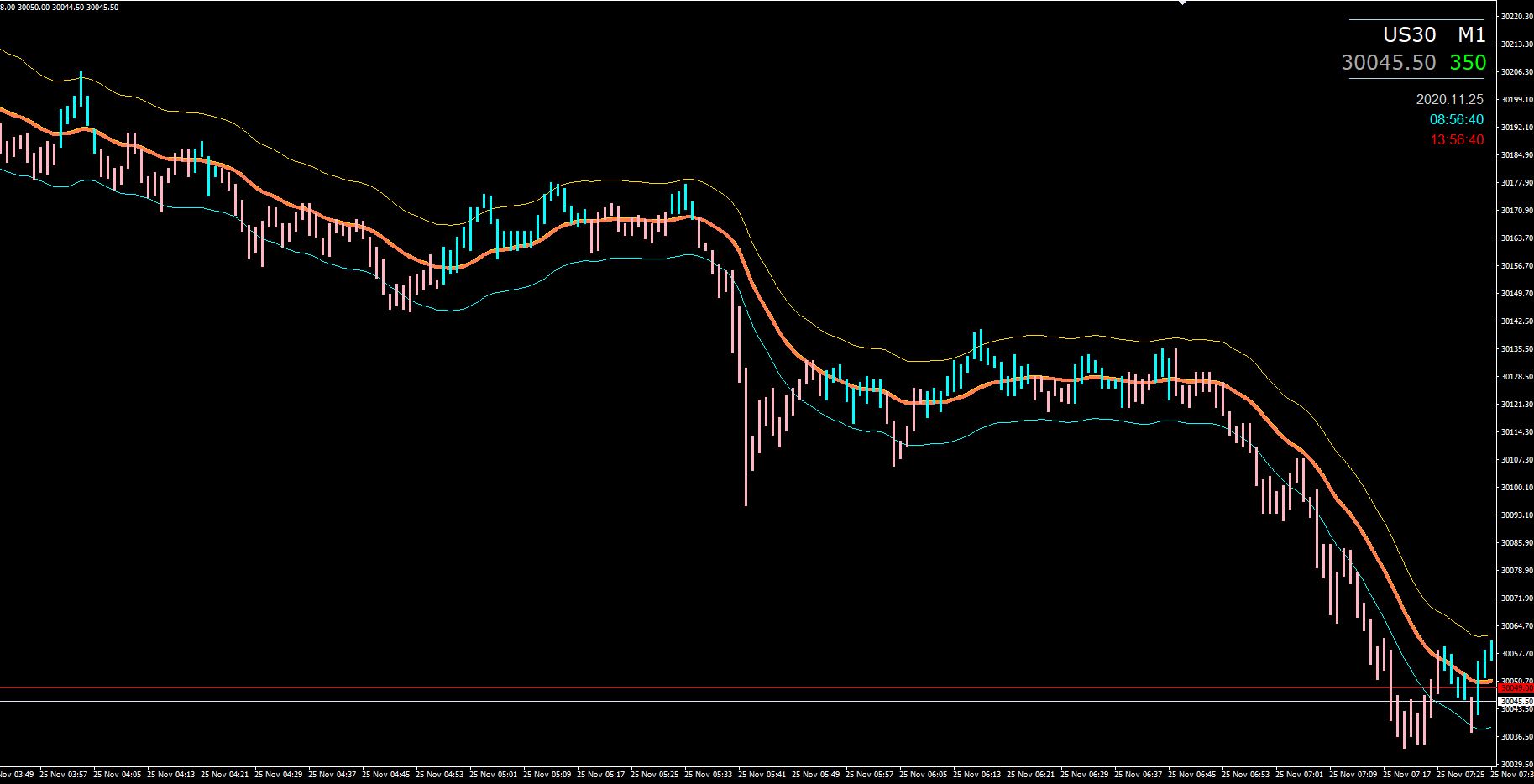 MA_ATR linear weighted. Period 24.. ATR 100, Deviation 0.618....(doesn't need to be set very wide)....1.618 works very well too.