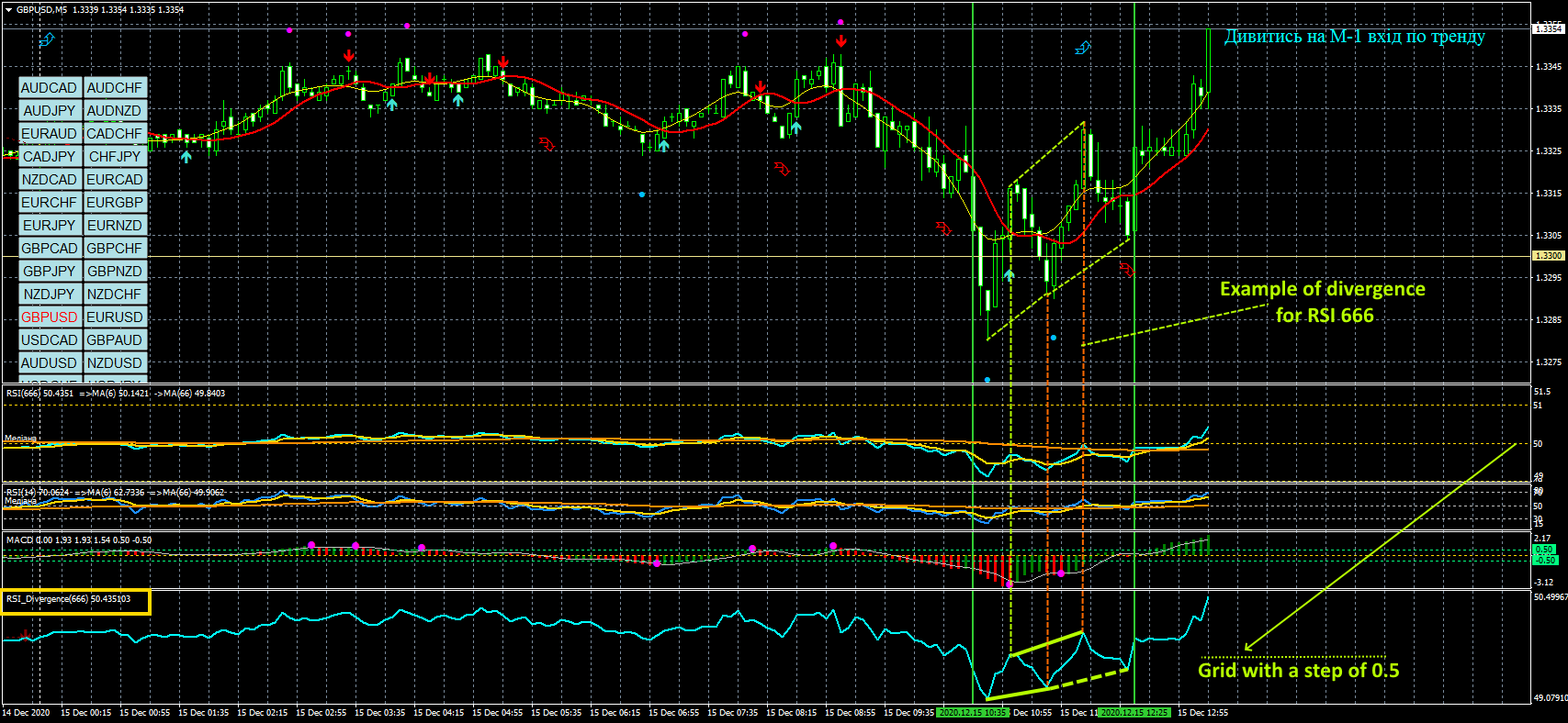 That it reflected the divergence on the screen. No need to signal. This is testing a new strategy. MA with period 6 and 66 will be superimposed on the RSI indicator.