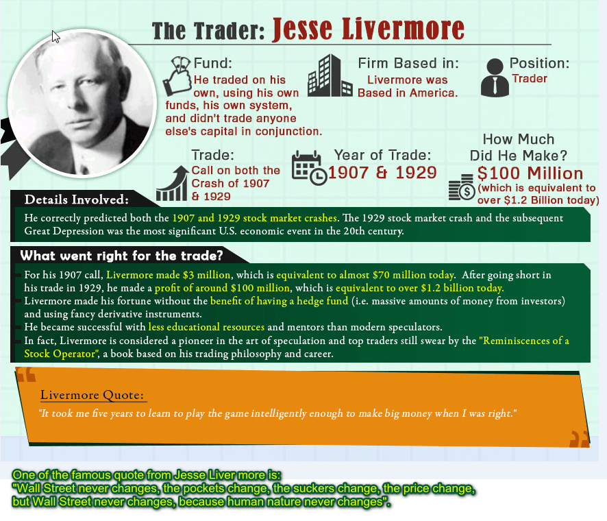 Jesse Livermore was one of the most daring traders known to man. For those who know of him, here is some information and examples of his trading being used in modern times :thumbup: