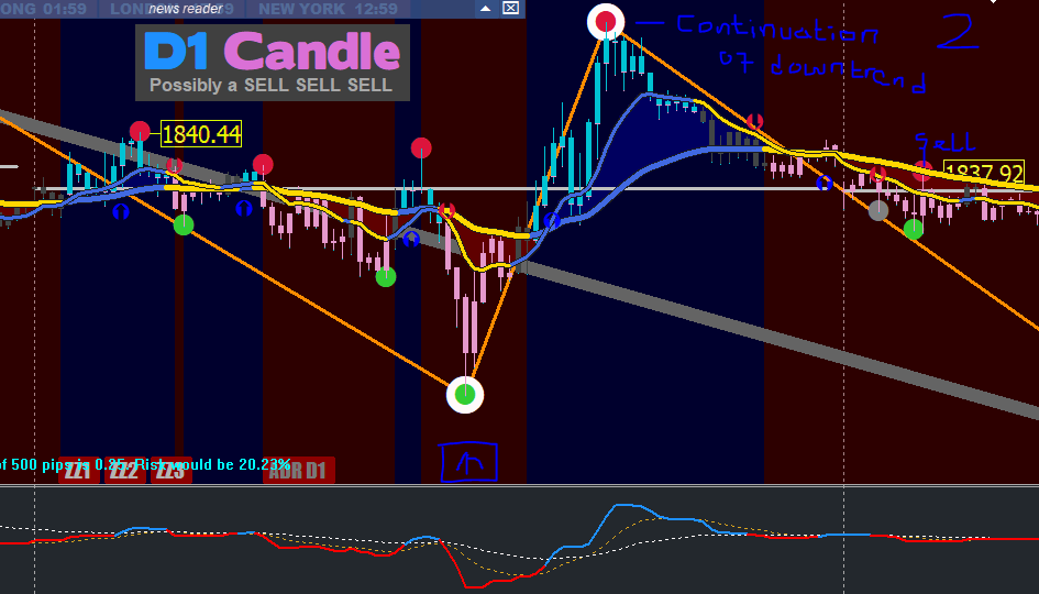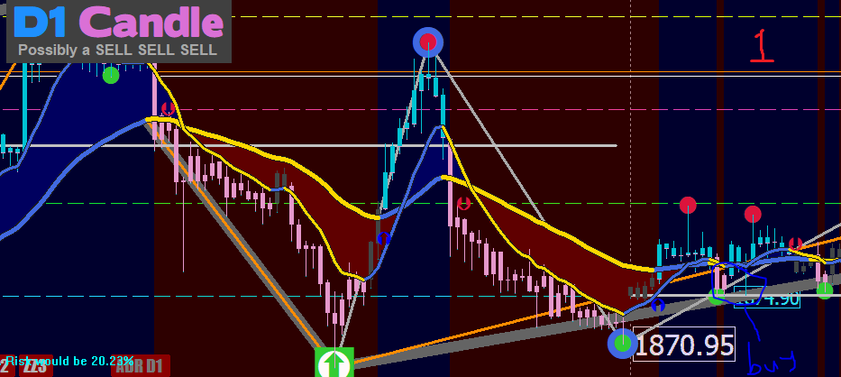 see attached pictures for examples. The charts are two different scenarios. The reason I drew the green sqaure on the second image is that the green square could have appeared there, but then the red arrow appeared to indicate continuation of a down trend, so you wait to see if a green arrow will appear to confirm a buy trend, or if a red dot will appear to confirm continuation of a downtrend. Then you make your decision based on what happens next.