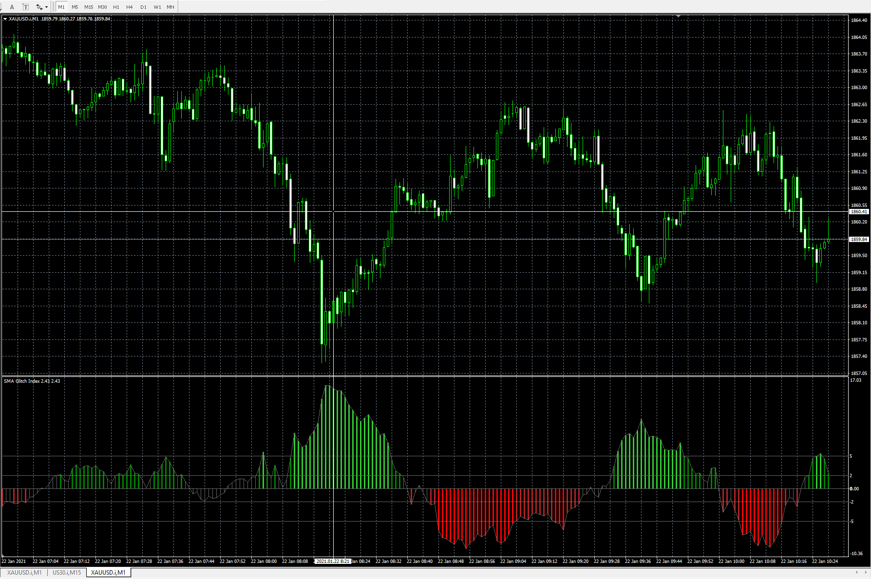 This Glitch Index indicator works okay for currencies but gives opposite signals for indices and gold. For example, uptrends and downtrends are reversed on the opposite side of the zero line. Could you please fix it so it works correctly for gold?