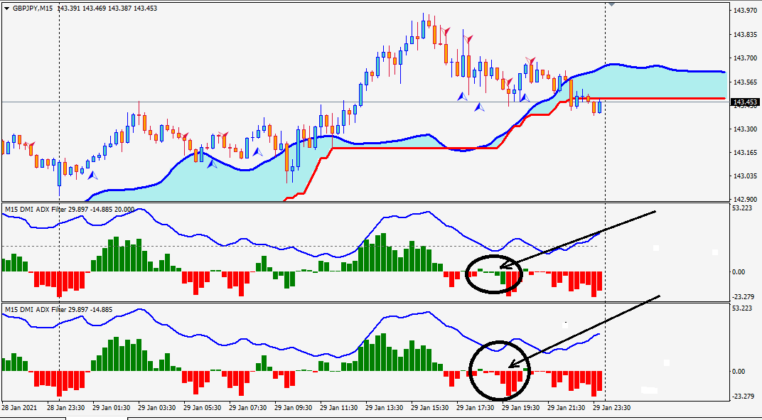 But as shown in the figure compared with the one without ADX lever the histo bar difference between +Di and -Di is green despite it is in negative side, however, in the old version it is correct