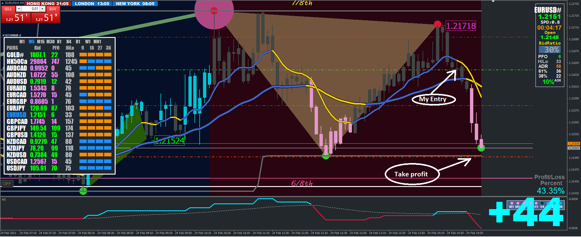 XARD: The hilo is 33 and you are pushing +44 Pip$ (no doubt a double trade), you are over extended, this is why Forex is no good (unless your daily target is 20 to 30 Pip$).