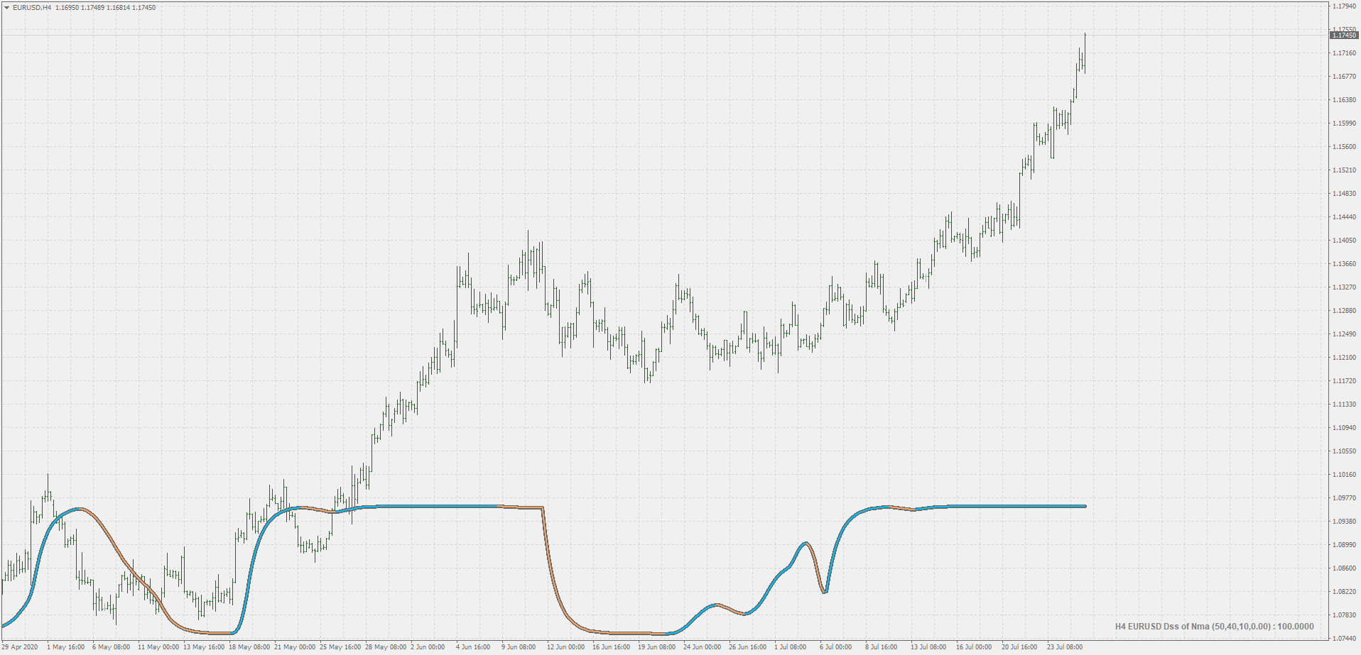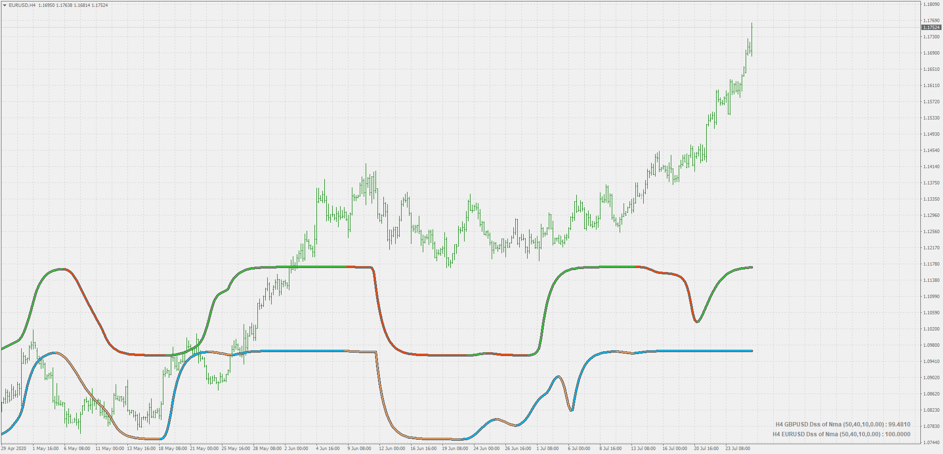 It is an on-chart displayed double smoothed stochastic (DSS) using ocean natural moving average (NMA) as a way of price pre-smoothing (and a few extras). It is a multi symbol and multi time frame indicator already (see seconds example)