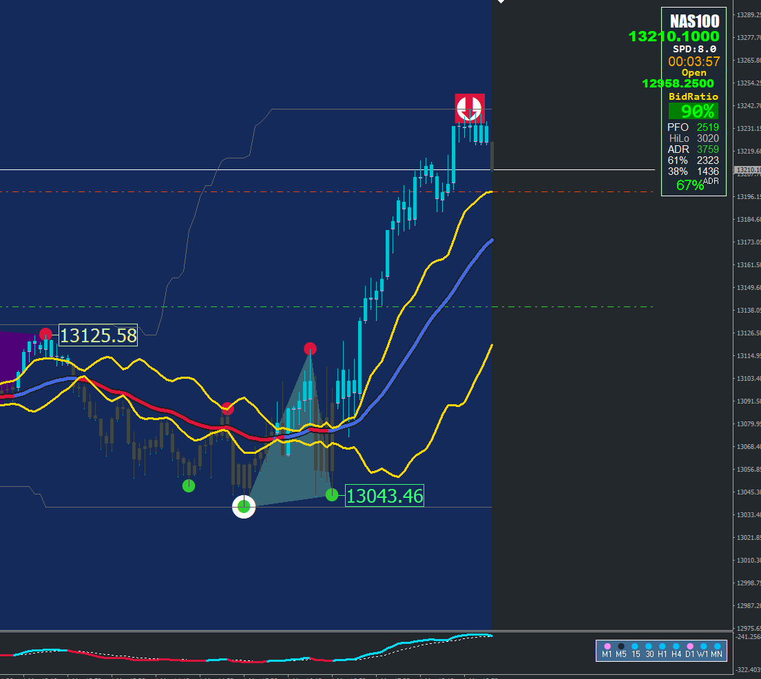 I was not able to trade the DOW, but managed later to enter long on the Nasdaq
