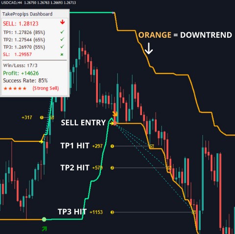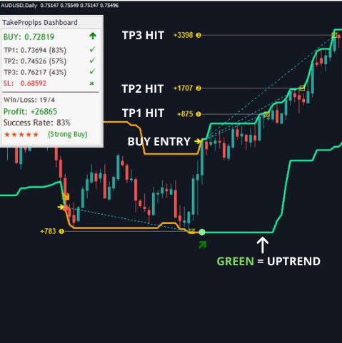Automated entry & exit signals – detects trading opportunities and provides you with take profit & stop loss.