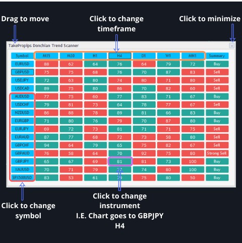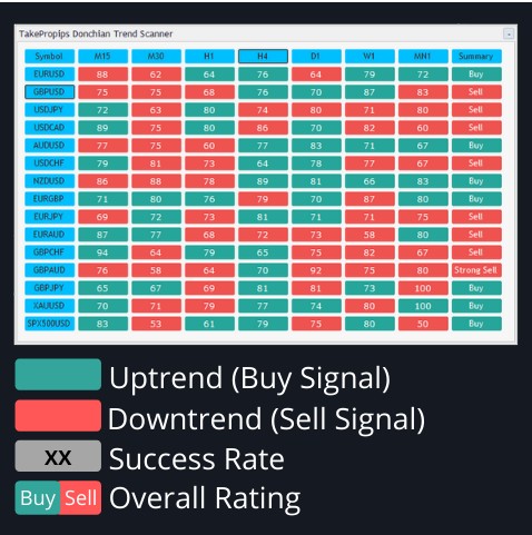 New Donchian PRO Trend Scanner is a powerful and effective tool that automatically detects the direction of the trend and provide you an entry and exit signals.