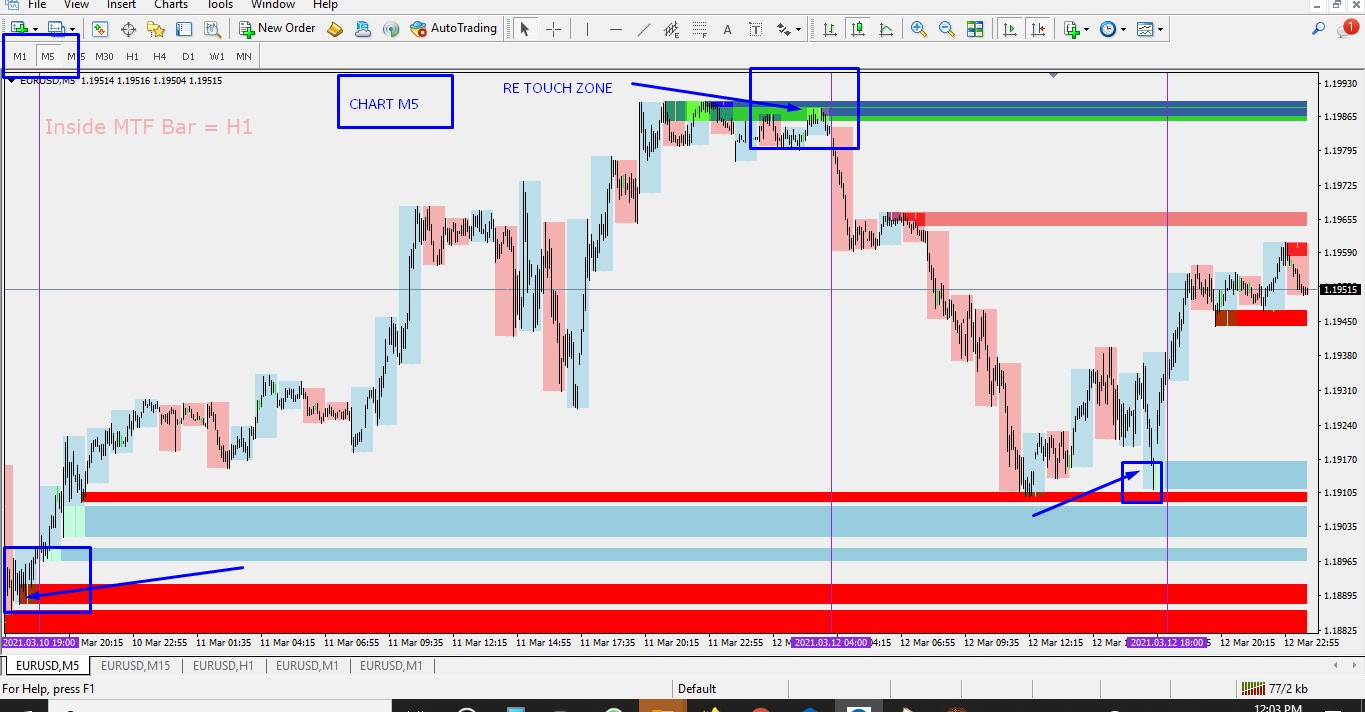 Trade based on 2nd rejection zone and breakout bar.