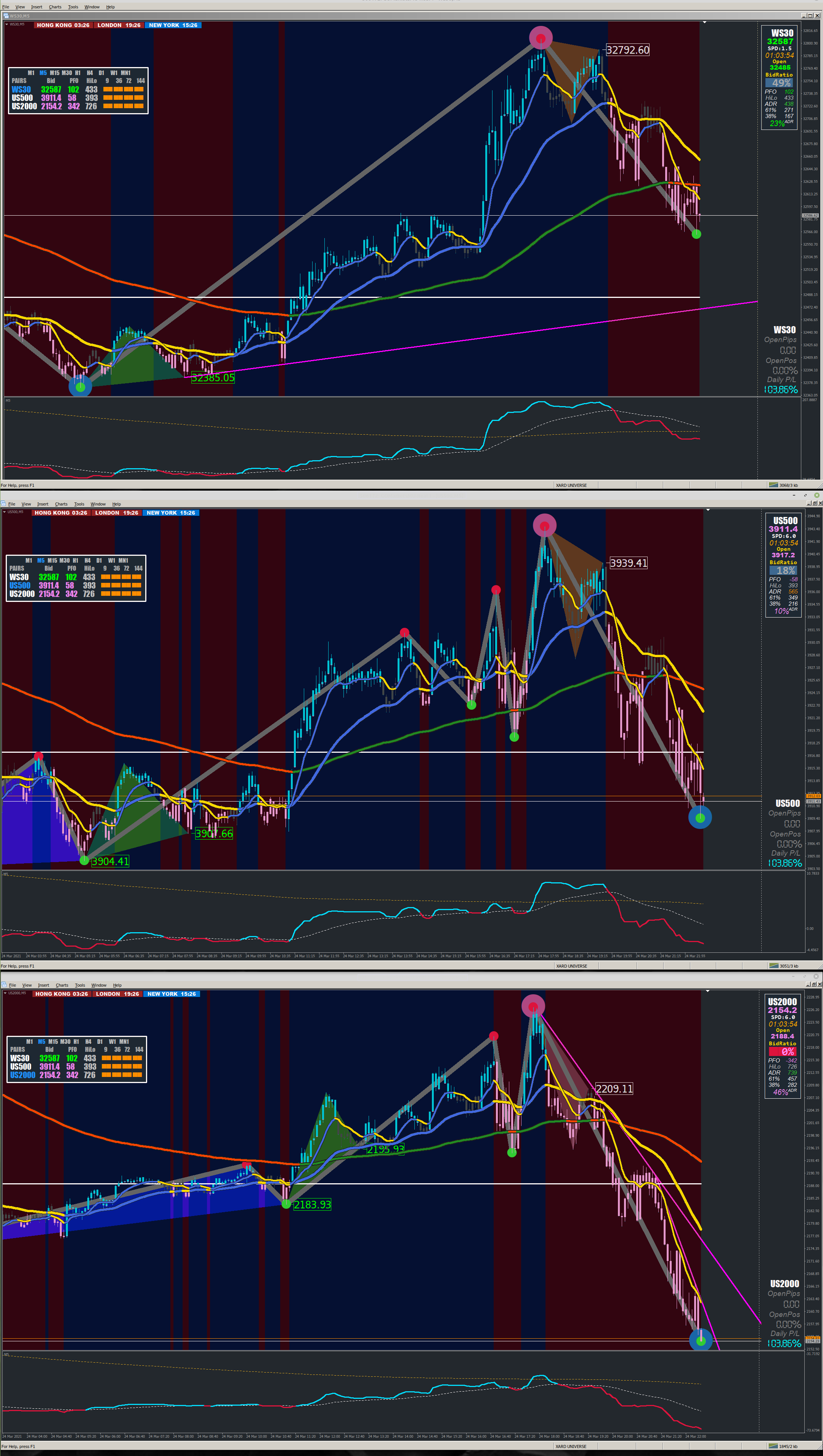 I have trimmed back indicators on the chart and fixed the pips showing separate amount for each chart.