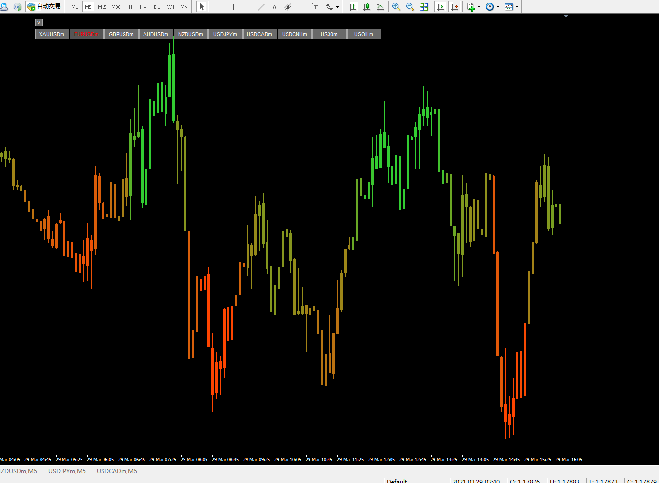 This is the function I want: "You only need to change the color of the candles in the main chart, and don't need them to be displayed in the (secondary chart) technical indicator window".