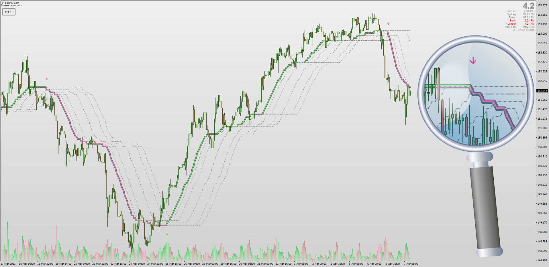 Mrtools's Dynamic Zone Step Ehlers Optimal Tracking Filter is a strong contender for 2021's review of our "Top 10 Best Indicators" list. Proving to be one of the most reliable trend trading codes for MT4, it now features AHTF MTF. Download (.dll req.): viewtopic.php?p=1295432496#p1295432496