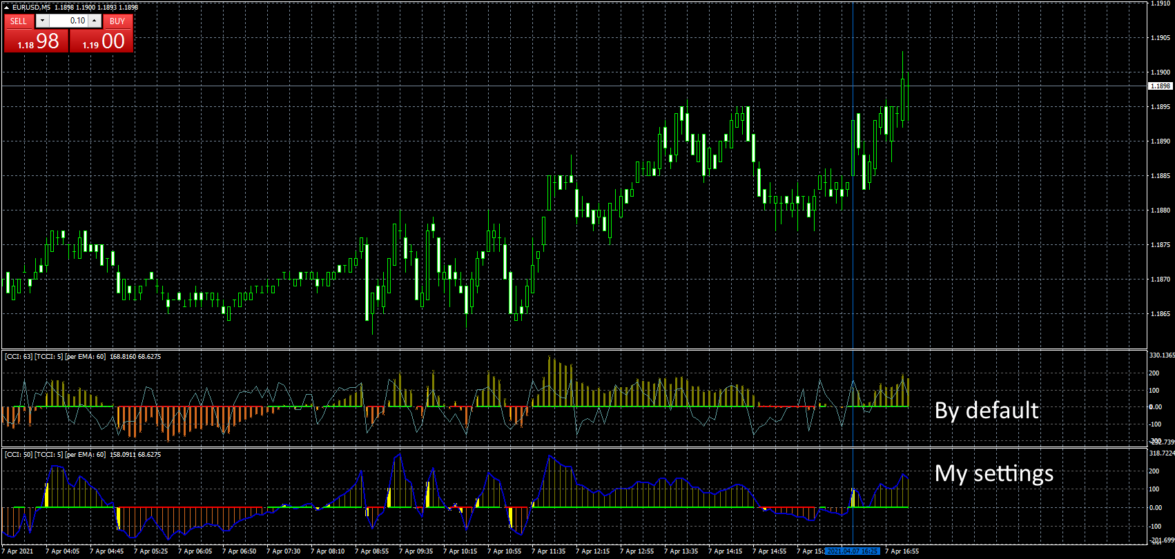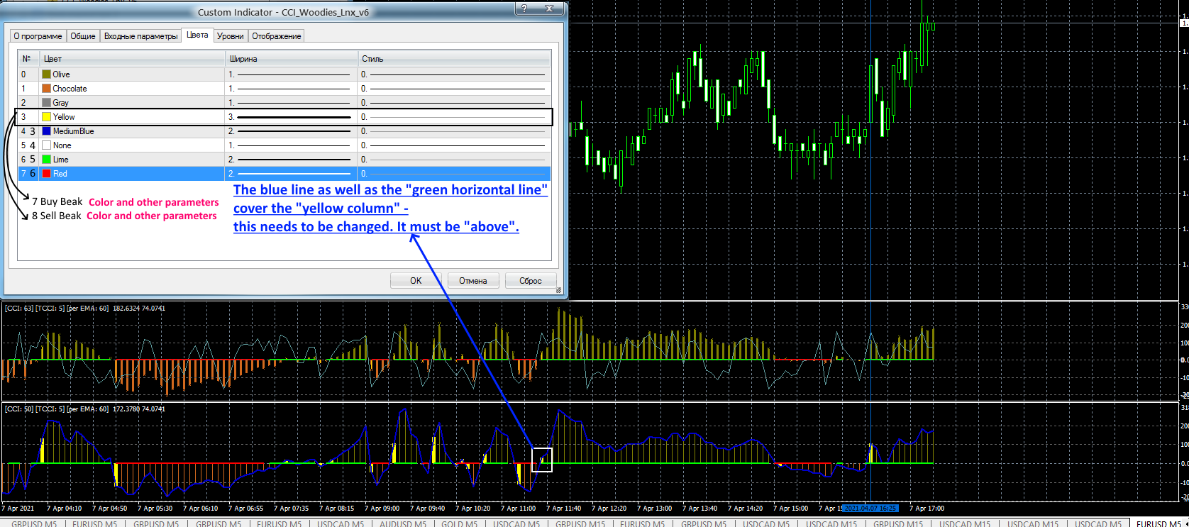 There is such a great indicator "CCI_Woodies_Lnx_v6" from the strategy "Raven". I would have passed by, but changed the settings and saw the "Golden Beak".