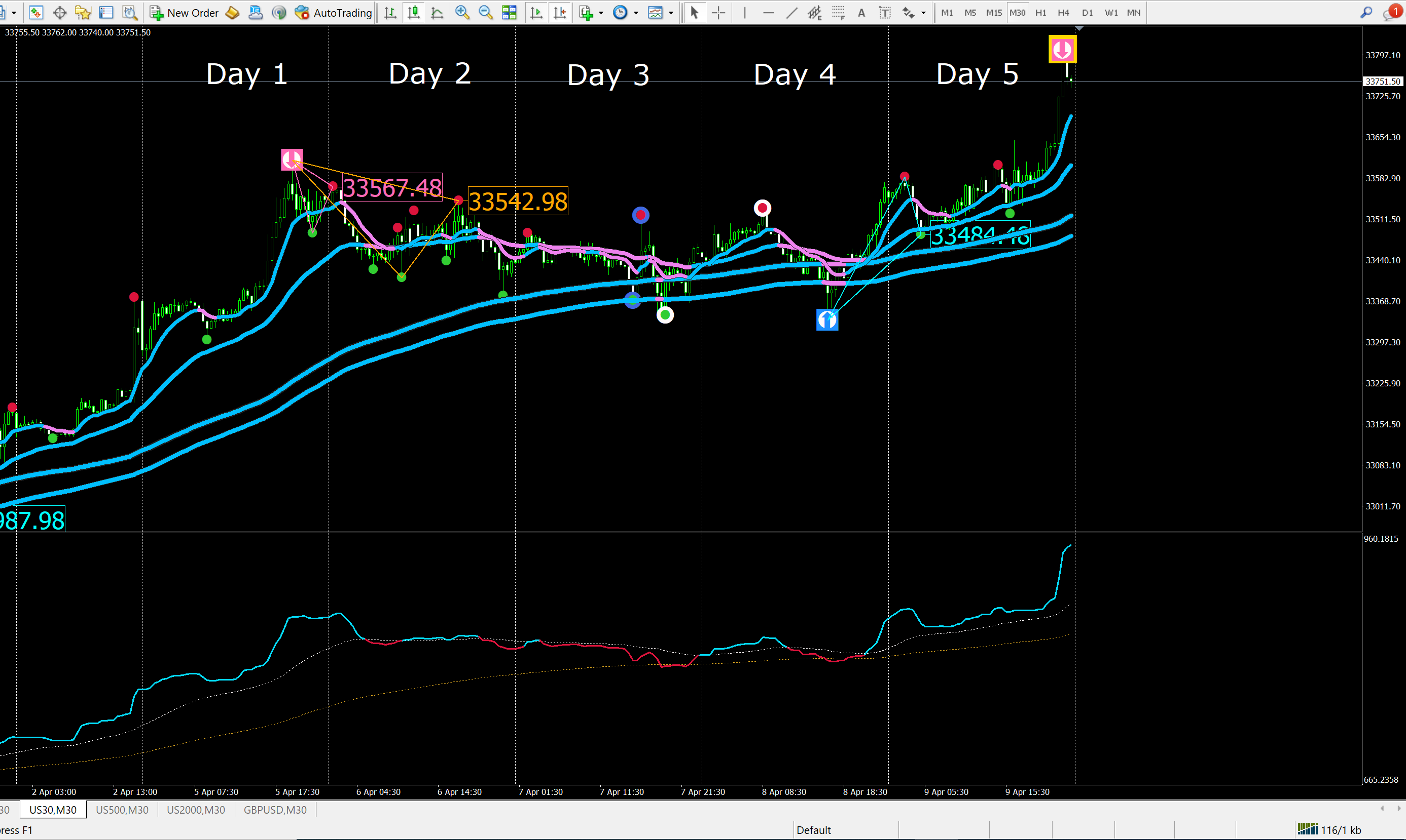I took a screenshot of US30 index M30 chart for last week up to closing time.