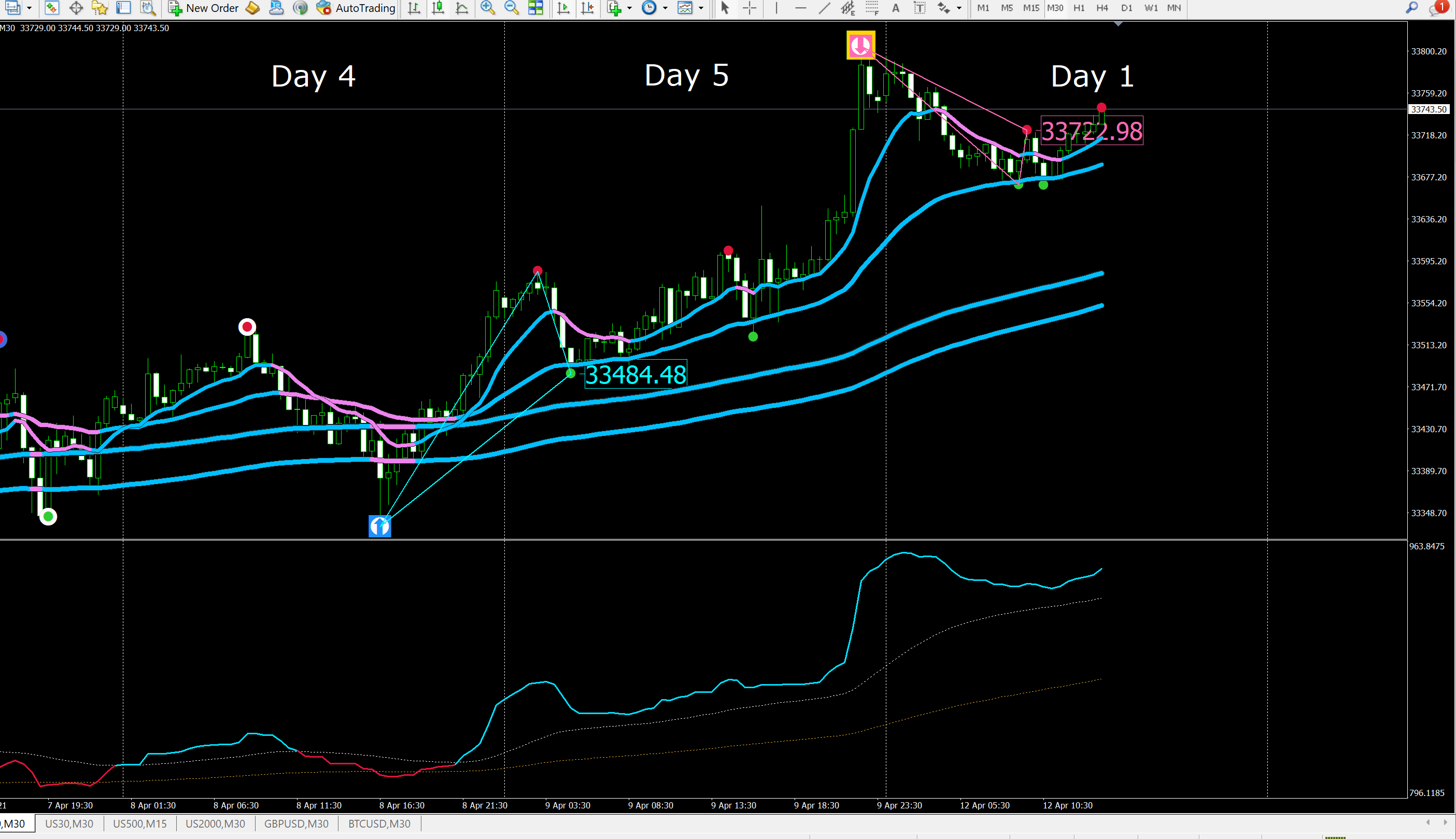 Take a look at the 2nd dot triangle which got printed today on US30 M30 timeframe.