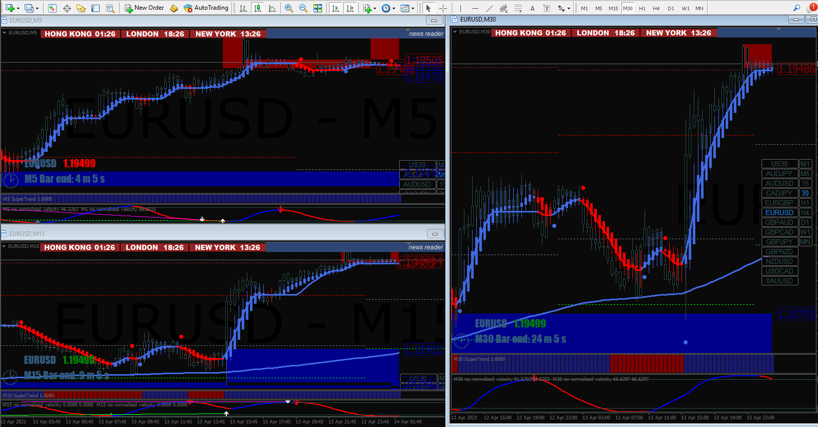 I'm a scalper so I normally use the 5, 15 and 30 mins TF.
