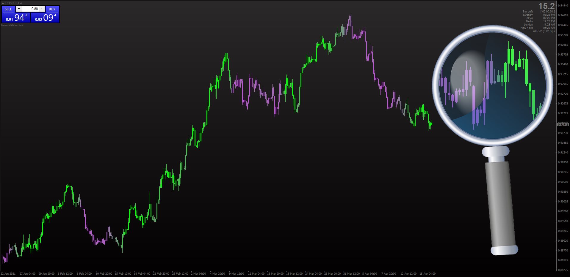 The Dynamic Zone KST (Know Sure Thing) Bars is a unique code that provides a complete MTF Candlestick overlay of the "DZ" KST indicator. It comes with Mladen's popular "Gradient" effect commonly seen on his Polychromatic indicators & more. D/L (.dll req) viewtopic.php?p=1295432779#p1295432779