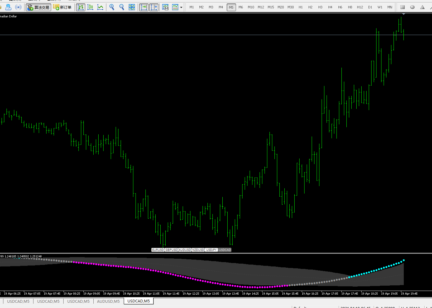 Put T3 floating levels in the technical indicator window, it looks like this.