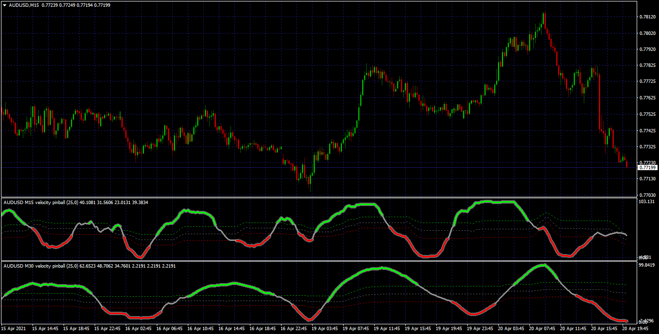This is velocity pinball, with velocity taking the place of momentum. Since velocity is naturally smooth felt there was no need for the pre smoothing. Anyway indicator is mtf with floating levels.