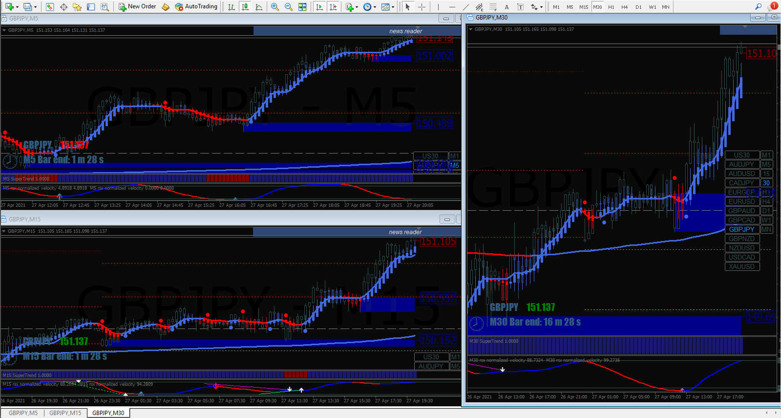 The profiles have 3 Time Frames (5-15-30) but you can change them to whatever Time frame you wish according to your own trading style.