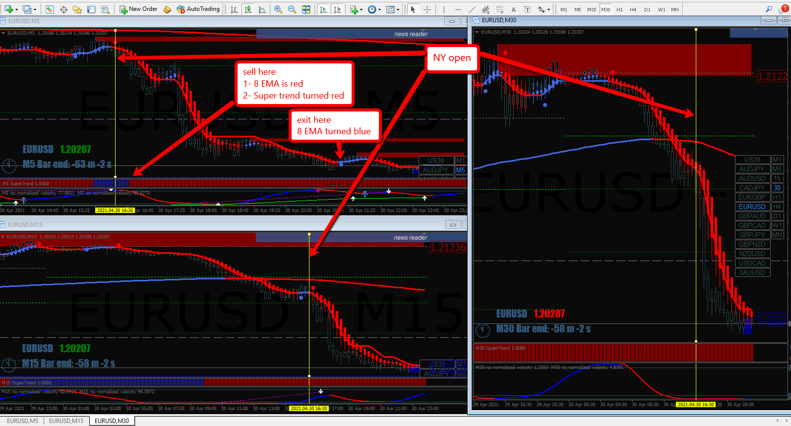 8 EMA turned RED 1 candle after NY opened