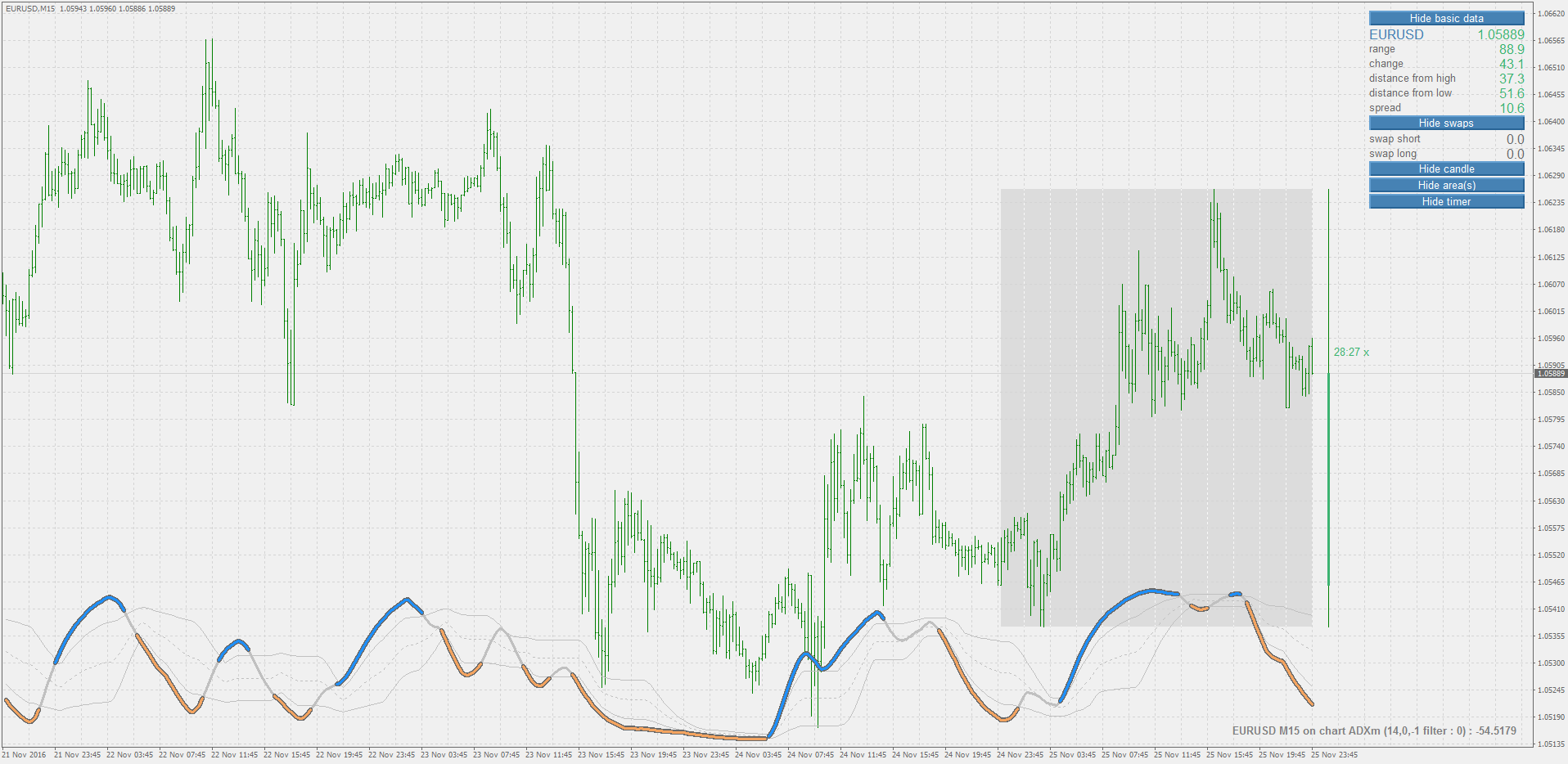 It is not just a mere transform to on-chart version, but is having additions compared to the original ADXm (namely averages choice for price pre-smoothing, filtering, floating levels, ...). All in all, some playing recommended (as usual), but is seems to be usable with those additions ...