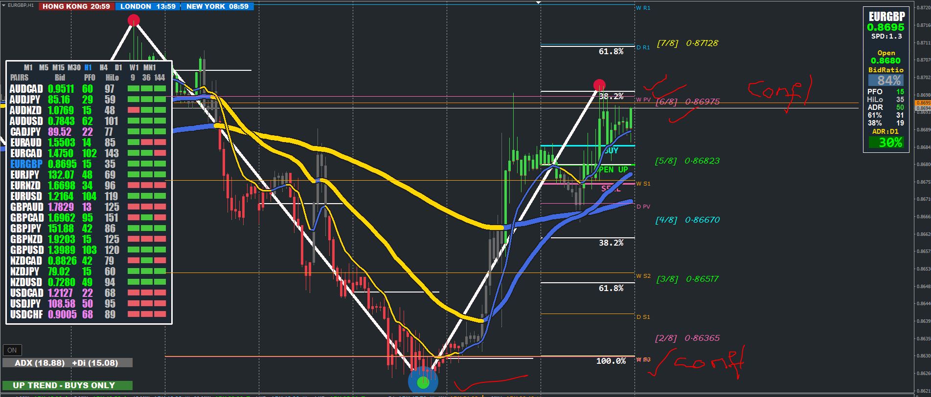 EURGBP :Confluence Support : Monthly Pivot and Weekly Support S3 , Semaphor. MM 2/8 Not too far.