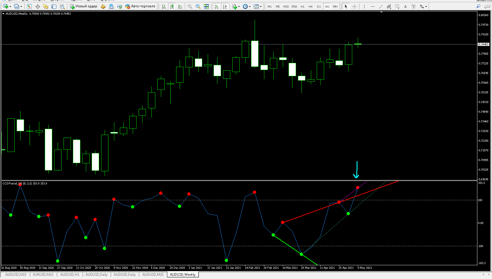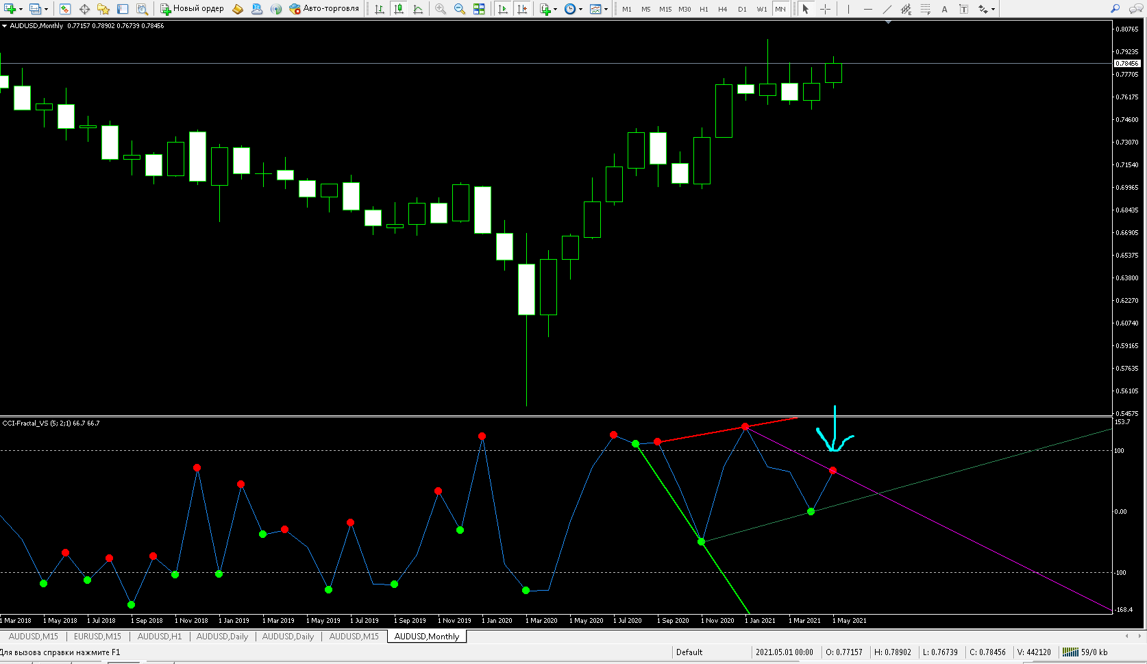 For example, the Australian dollar is now showing up, a week and a month down. This means that you need to trade on the day when the signal is down.
