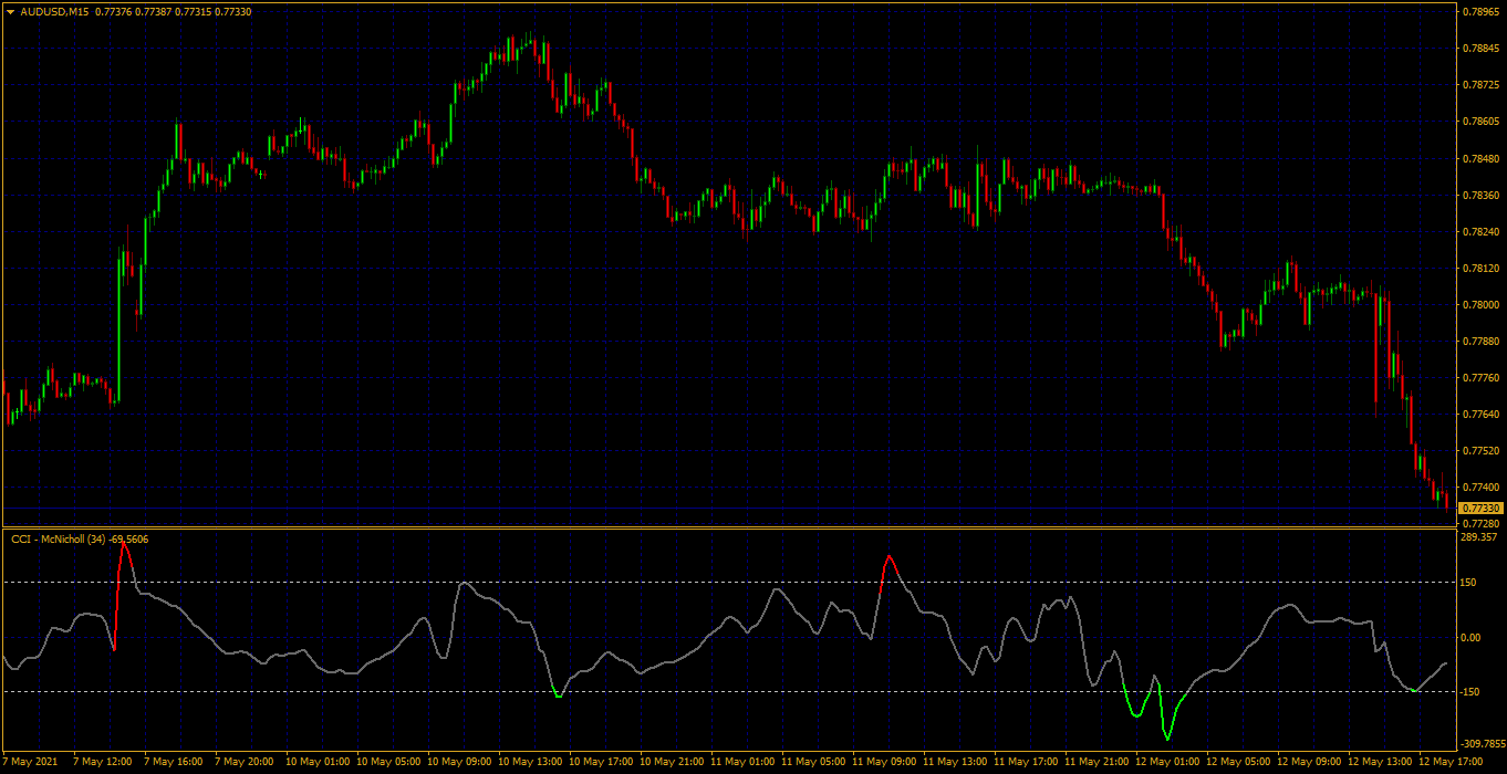 This is a cci based on McNicholls ma (better bollinger bands) it's using McNicholls deviation and presmoothing.