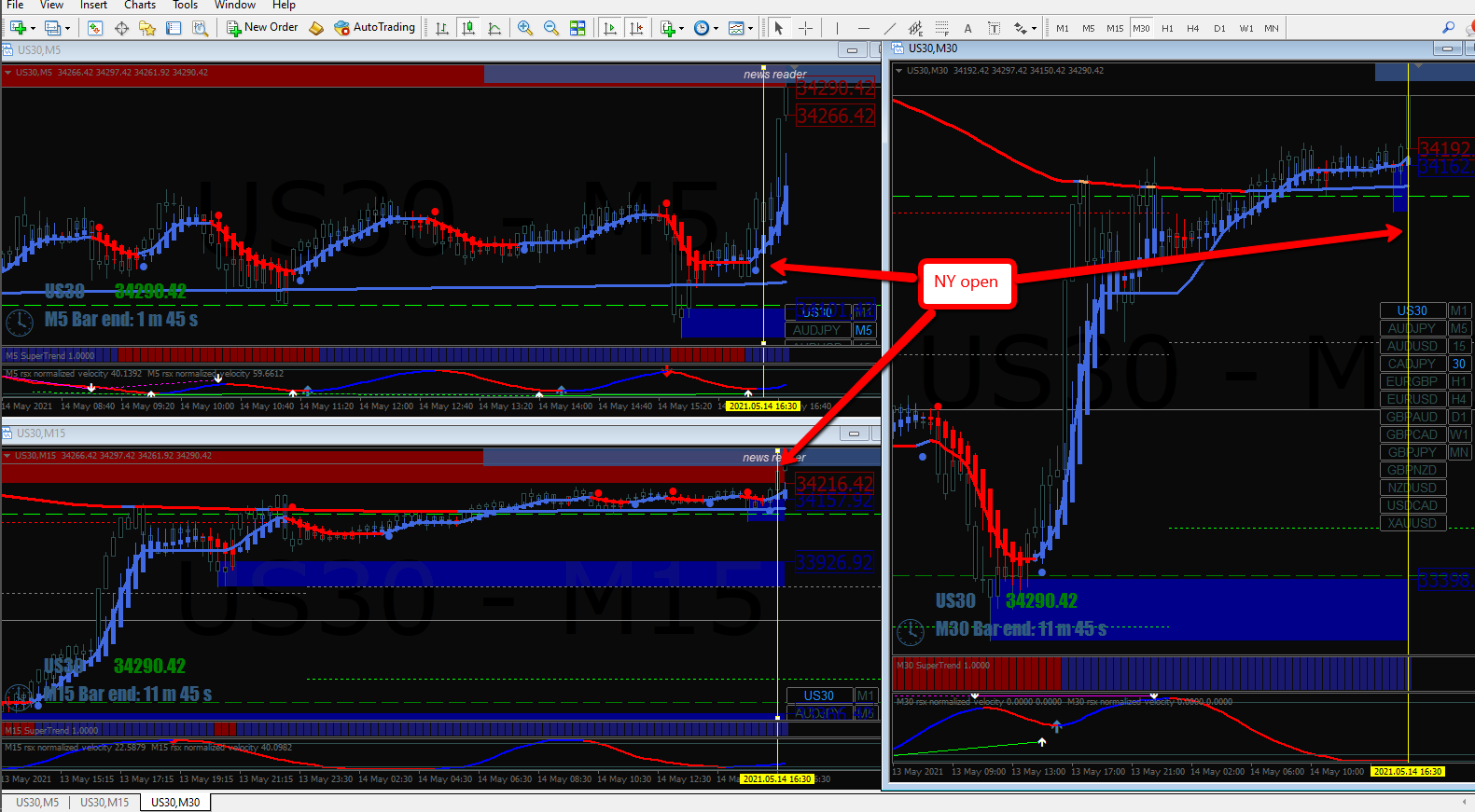 We had a buy signal just before NY opened, everything was blue and please notice the support of the 200 EMA that also helped to make a decision to go long.