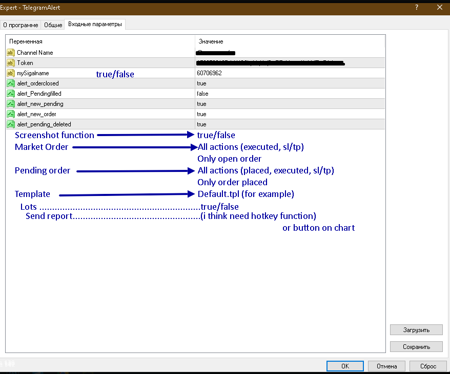 I found an excellent open source EA for communication mt4 - telegram, but it needs some improvements and some bugs fixing. I think it would be a great gift for the entire forex community. The source codes of the advisor are in the archive.